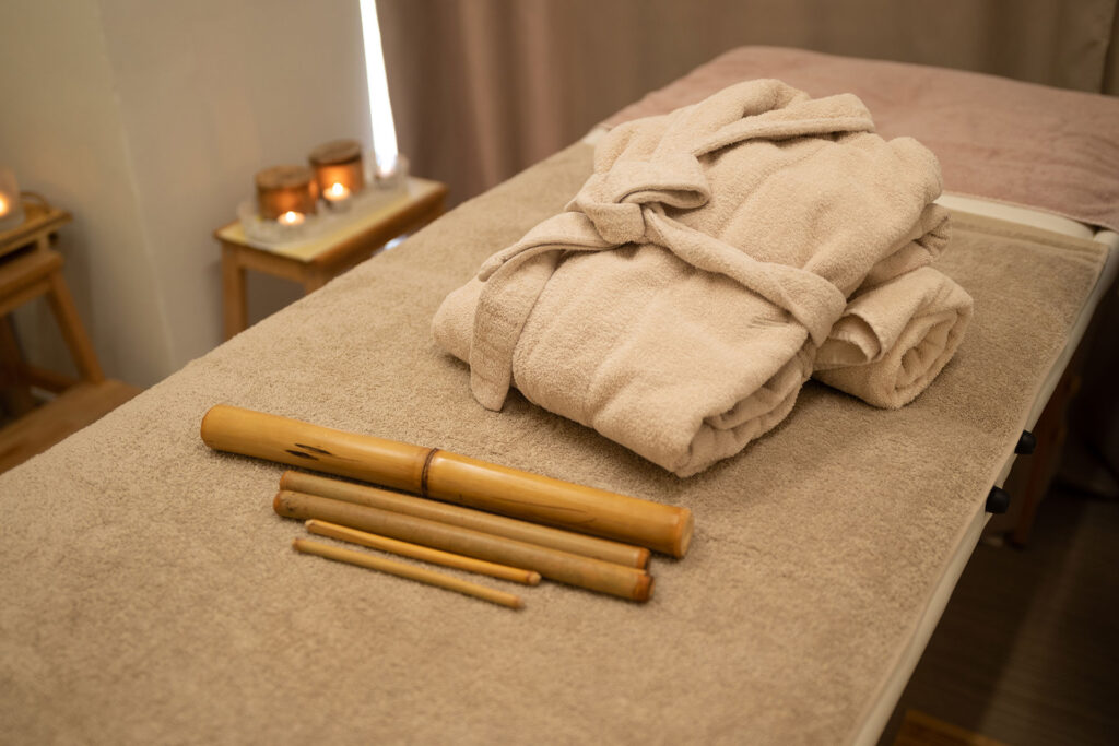 Η τεχνική αυτή συνδυάζει το παραδοσιακό μασάζ με την ευεργετική επίδραση του μπαμπού, που έχει αποτοξινωτική και αναζωογονητική δράση. Βοηθά στην ανακούφιση από μυϊκούς πόνους, την ενίσχυση της κυκλοφορίας του αίματος και της λέμφου και τη μείωση του άγχους και στρες
